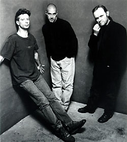| Martyn. Years of wearing a smart dark jacket and company tie have done nothing to mold him into a meek drone of pods. How he put up with the inane idiocy of multi-national corporate employment (as a gate agent at SFO, no less) is beyond anyone. But the writing is on the wall. His bandmates are overjoyed to hear him say he's done with it. Martyn is a film-maker. His scary room in his scary house close to the beaches of Pacifica, CA, tell the tale. The walls are covered with kitschy velvet paintings of curvaceous sirens or movie posters from the seventies. A coffin sits on the back porch. There are a lot of phonograph records. Vinyl. Martyn geeks out with film and video crews about cameras, lenses, lighting and technique. His parents, who brought him to the Bay Area from Liverpool, England, when he was five, are very proud of him. Who wouldn't be? He's Martyn Jones, the stubborn and individual iconoclast. Charming and polite, with a speaking voice that can focus with laser-like intensity, he takes his time. You can't rush Mr. Jones. Send us email, we always reply. And come to a show, everything's different live. Thanks for liking our music! 11/5/97  | |
